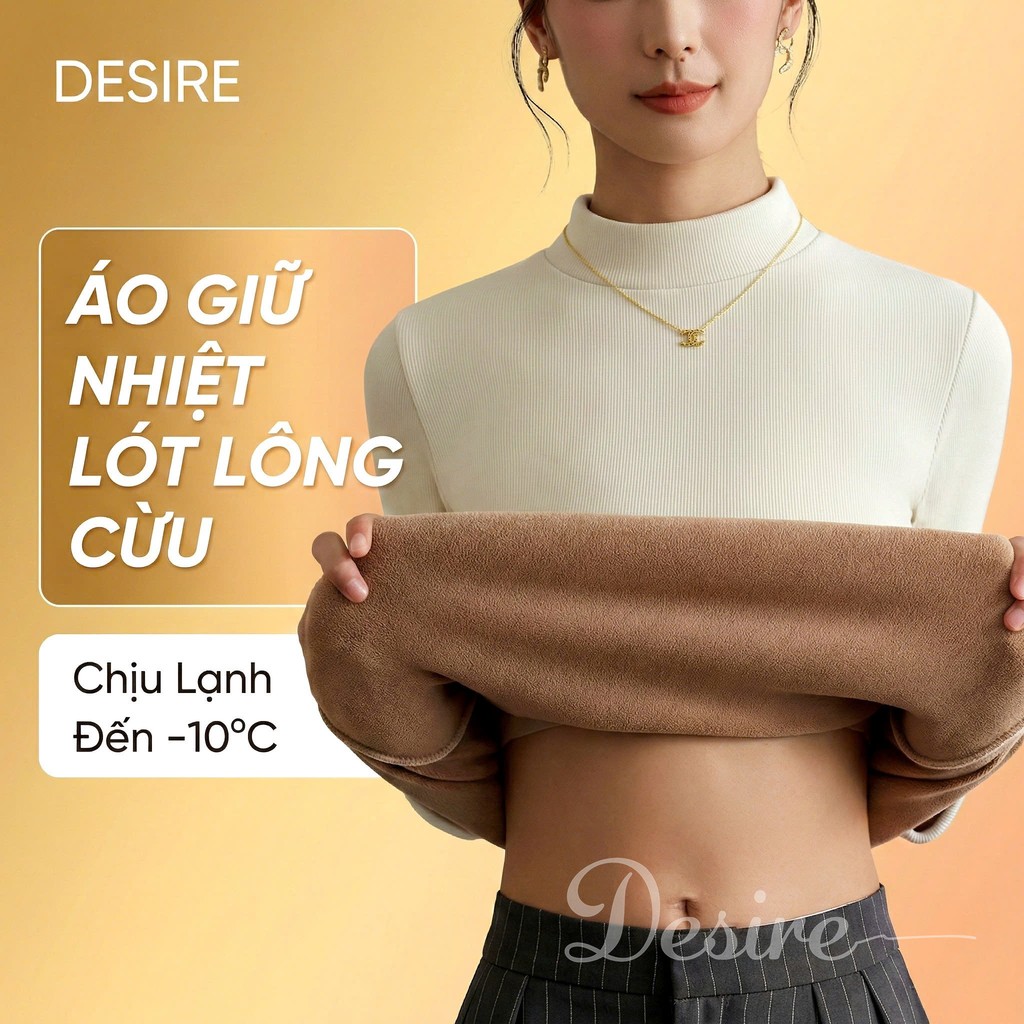 Áo cổ lọ chất Nhung len tăm lót lông cừu dày giữ nhiệt mùa đông ấm áp DESIRE H331