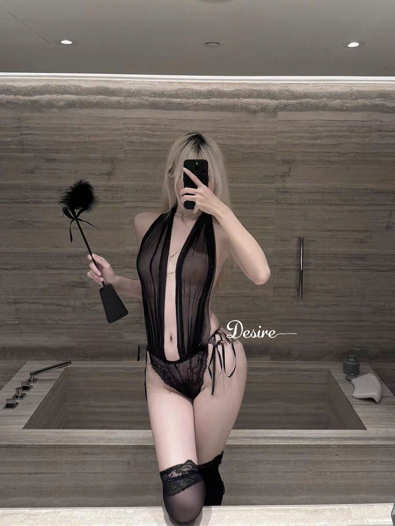 Bộ liền thân yếm cột dây chất ren mềm gợi cảm Desire VN-8859-2