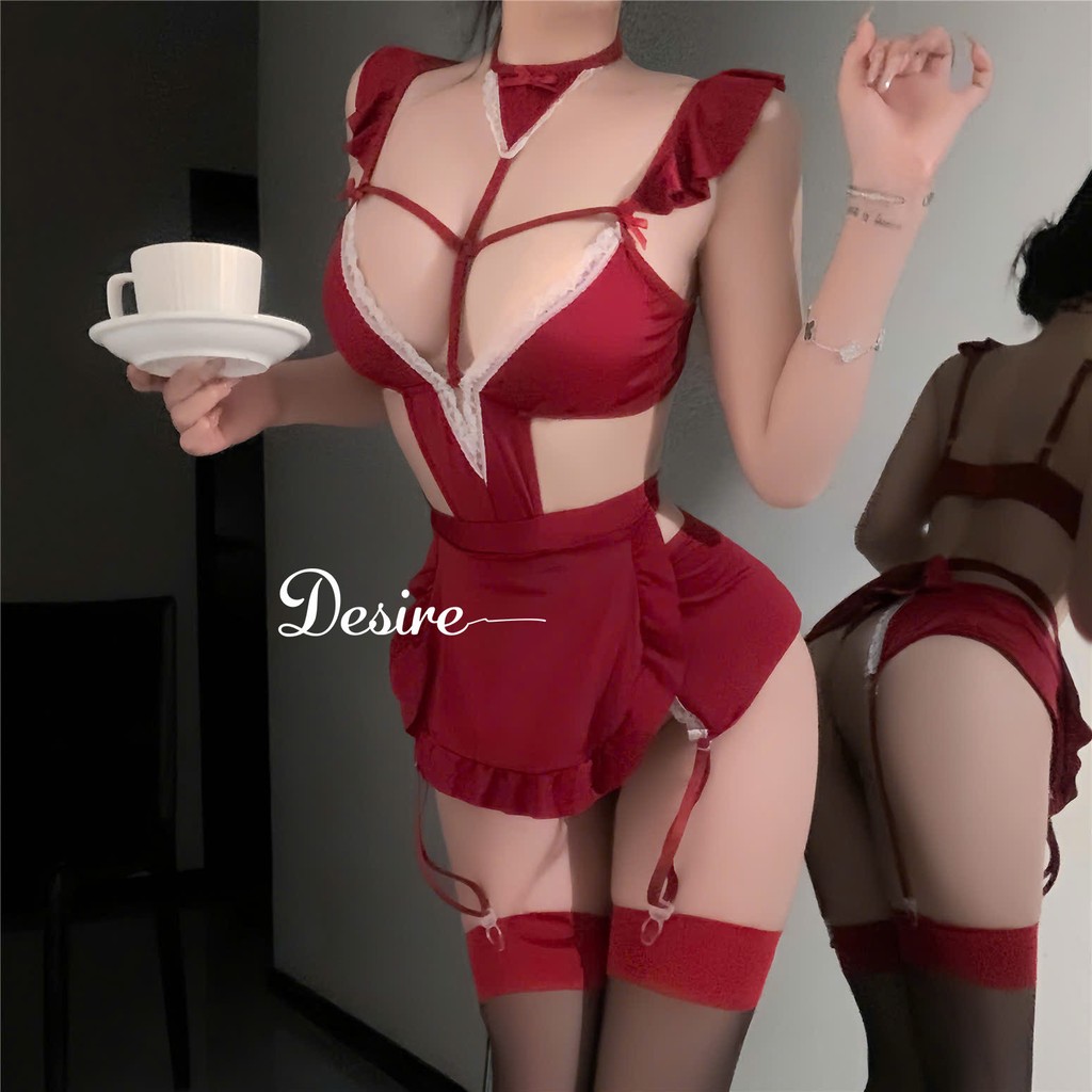 Set gồm: 01 Bodysuit + chip + tạp dề và có sẵn dây đai tất.