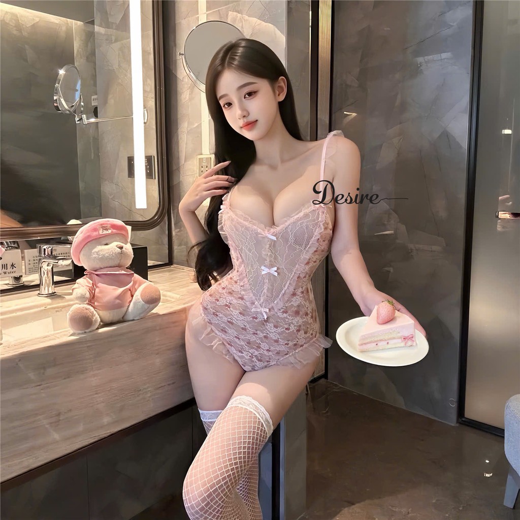 Tên sản phẩm: Bodysuit Ren Hoa Nhí Phối Nơ Phong Cách Tiểu Thư Ngọt Ngào - Váy Ngủ Sexy DESIRE VN-1336