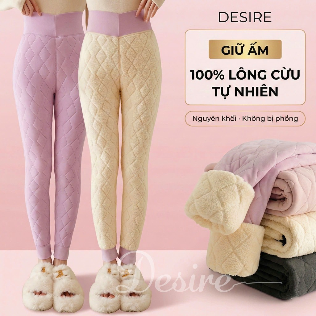 - Quần legging dài lót lông cừu nhung mịn siêu mềm bề mặt và siêu ấm