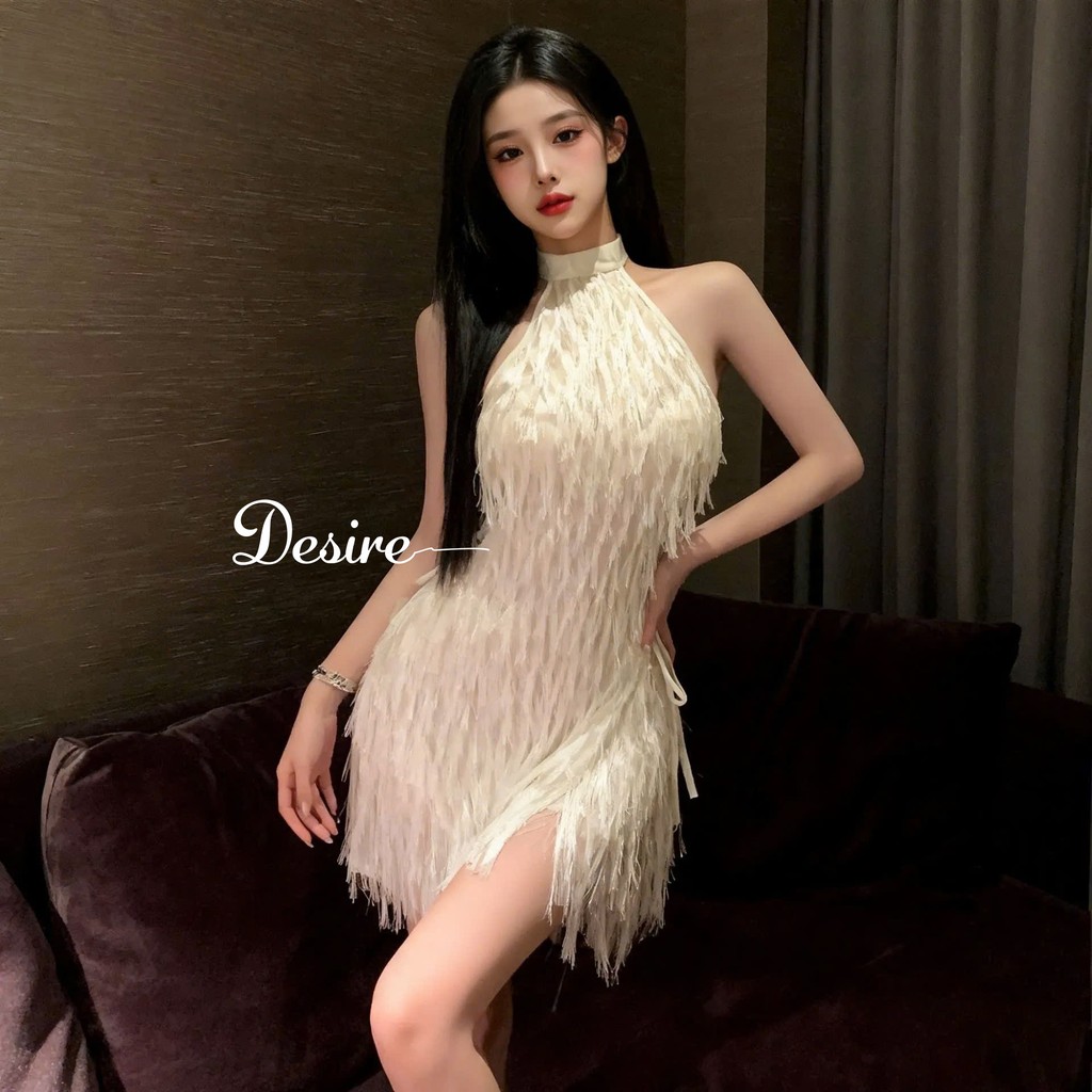 Váy ngủ tua rua cổ yếm sang trọng quyến rũ - Váy ngủ sexy sẻ đùi cao cấp DESIRE VN-6533